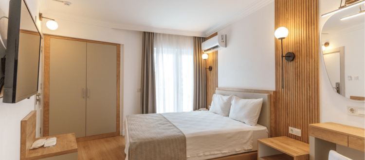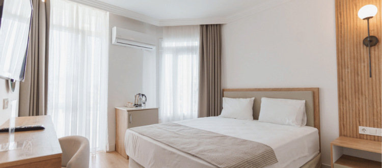 Avşar Butik Hotel’in standart deniz manzaralı odaları, konfor ve zarafeti bir arada sunarak misafirlerine unutulmaz bir konaklama deneyimi yaşatır. 20 m² genişliğindeki bu odalar, modern mobilyalar ve konforlu yataklar ile donatılmış olup, her detay misafirlerimizin rahatı için özenle tasarlanmıştır. Odalarımızın geniş pencerelerinden Akdeniz’in eşsiz mavi sularına açılan muhteşem manzara, konaklamanızı daha da özel kılacaktır.